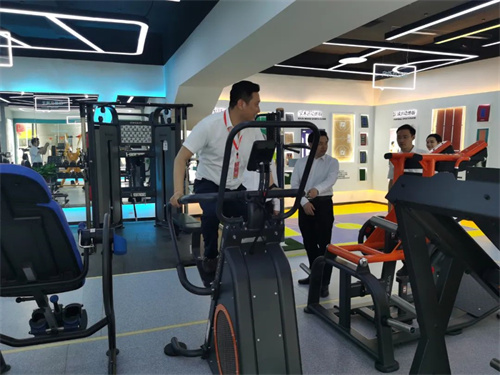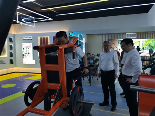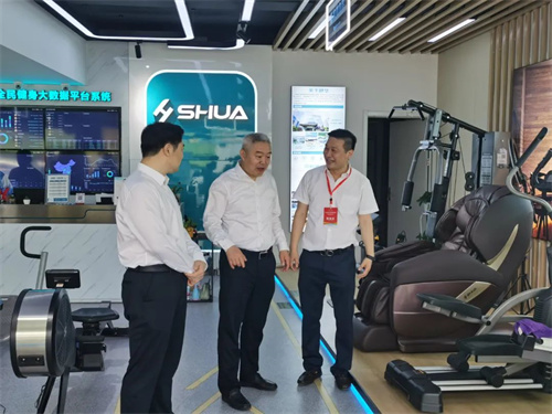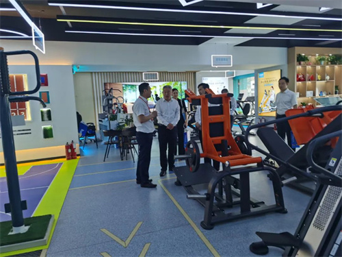 锐强体育集团董事长王进华先生向王映海副市长一行领导介绍了近年来企业发展情况,并带领大家参观了锐强体育集团济南省体旗舰店,详细介绍了无氧力量、心肺有氧、户外综合、私家健身、老年健身、康体器材六大健身场景区域,王进华先生还亲身示范健身器材的正确使用方法,全场景体验和具有科感的智能互动得到一行领导的充分肯定与认可,并对锐强体育集团在体育产业发展中发挥的示范带动作用给予高度评价。