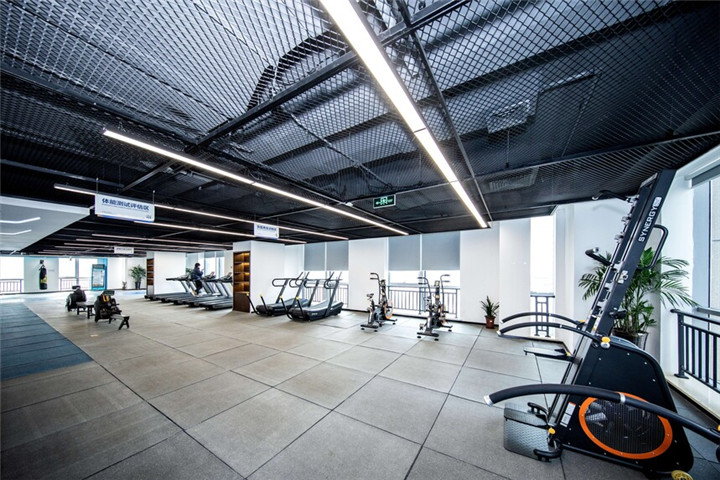锐强体育承建银行健身房,从测量场地,出具3D效果图到送货安装,都是锐强体育专业人员提供的标准化服务。